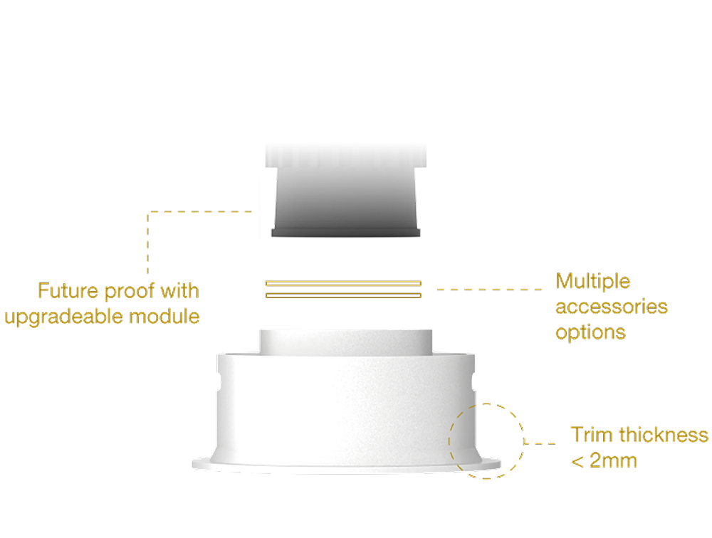 A series of downlights with a simplistic design that is available in various sizes, shapes, and finishing. Incorporating ELR’s signature modular concept design, LED modules are fully interchangeable with various choices to provide optimal illumination for all kinds of spaces.